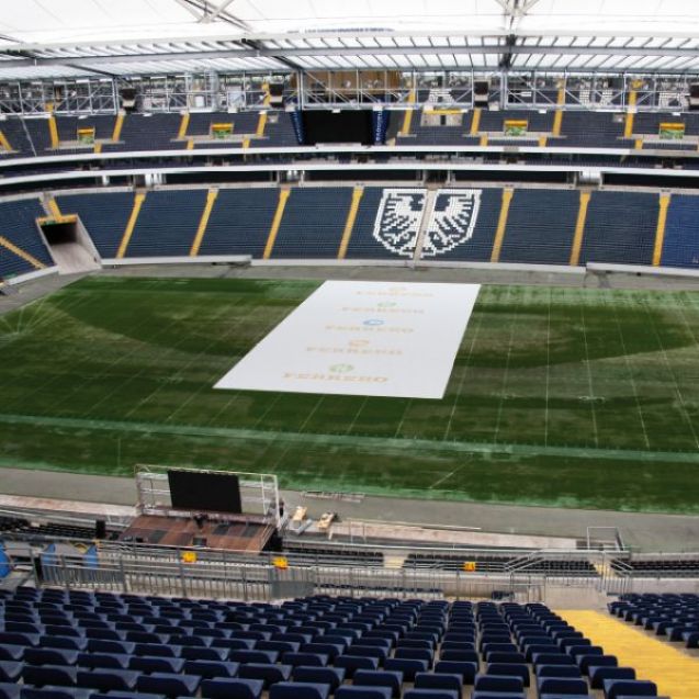 Bodenmontage einer Megaplane 30 x 25 im Stadion
