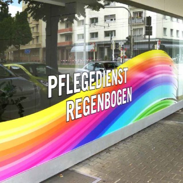 Beklebung der Schaufenster einer Pflegedienst-Praxis