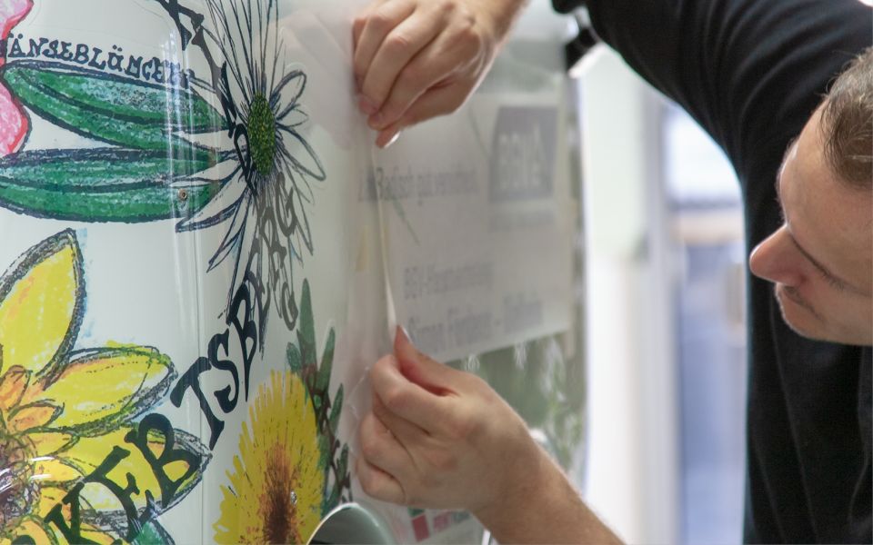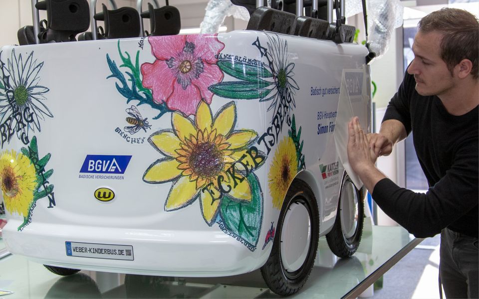 Simon Förderer, Hauptvertreter der BGV / Badischen Versicherungen in Dielheim, kam mit dem Anliegen zu uns, einen Kinderbus für den Kindergarten Eckertsberg zu bekleben. Auch der Entwurf dafür musste noch erstellt werden. Gerne unterstützten wir Herrn Förderer bei diesem Projekt. Erstellten mit ihm zusammen das Layout, druckten die Spezialfolien und beklebten das Fahrzeug.