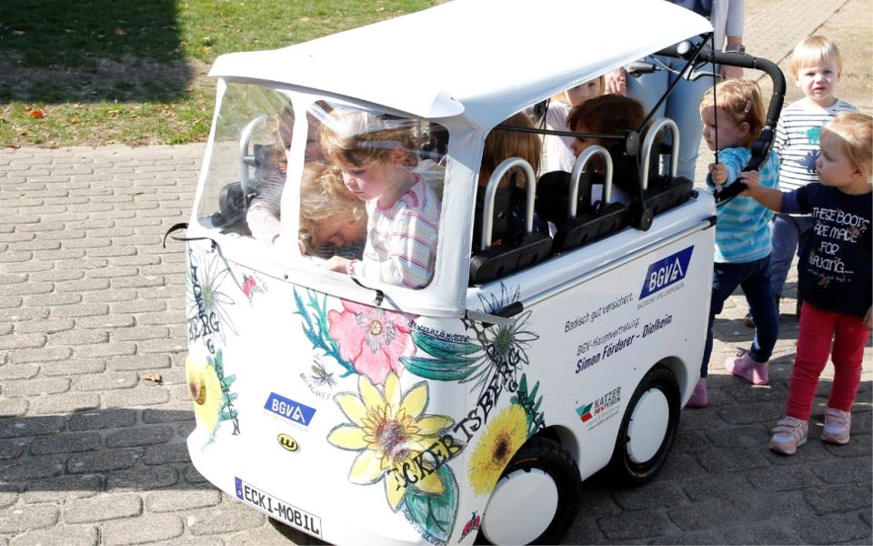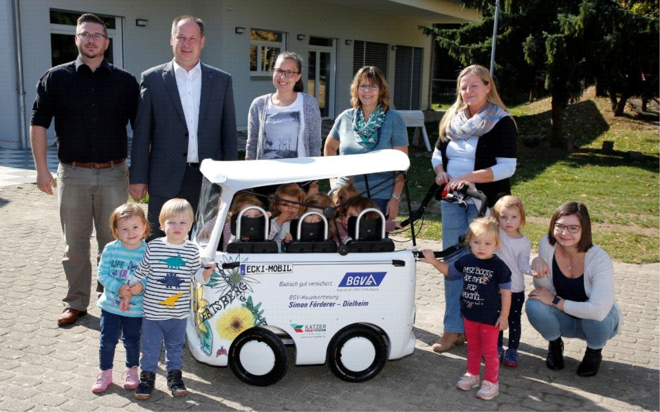 Am 28.09.2018 konnte dann pünktlich zur Dielheimer Kerwe der Kinderbus feierlich an die Leitung des Kindergartens Eckertsberg übergeben werden. Erzieher, Eltern und Kinder der beiden Kita-Gruppen freuen sich sehr über das "Ecki-Mobil".